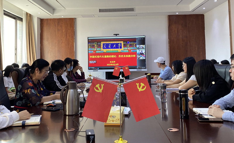 5月18日上午,国务院学科评议组成员、上海交通大学yl6809永利官网杜玉华教授应邀以线上形式作题为“中国式现代化道路的理论、历史及实践分析”的学术报告。报告会由yl6809永利官网和马克思主义研究院共同主办,学院全体教师及研究生聆听了报告。报告会由yl6809永利官网党委书记彭绪琴主持。